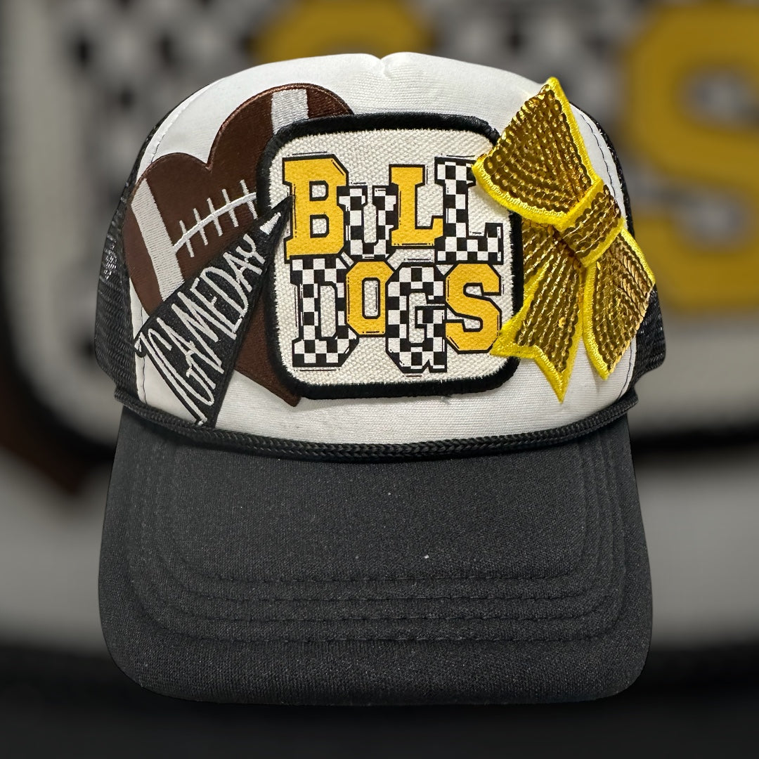 Custom trucker ballcap. Cap, bow, custom patch color will be changed.