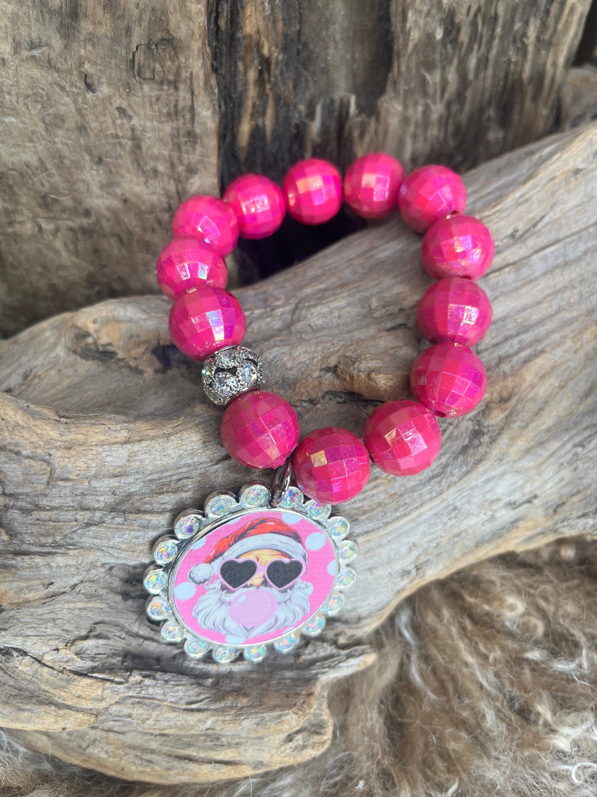 Christmas Stretch Bracelet Santa Blowing Bubble Hot Pink Disco