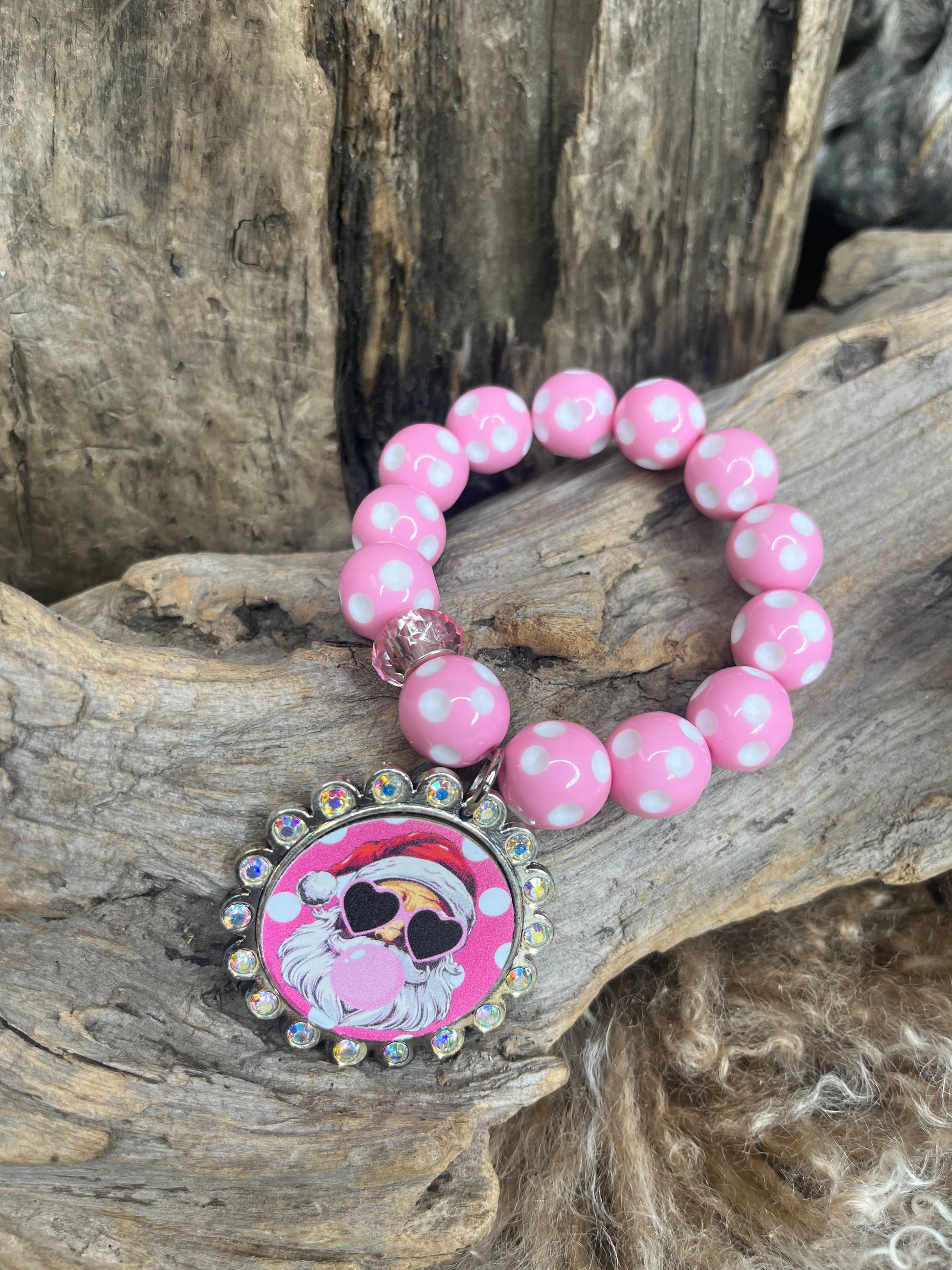 Christmas Stretch Bracelet Santa Blowing Bubble Light Pink Polka Dot