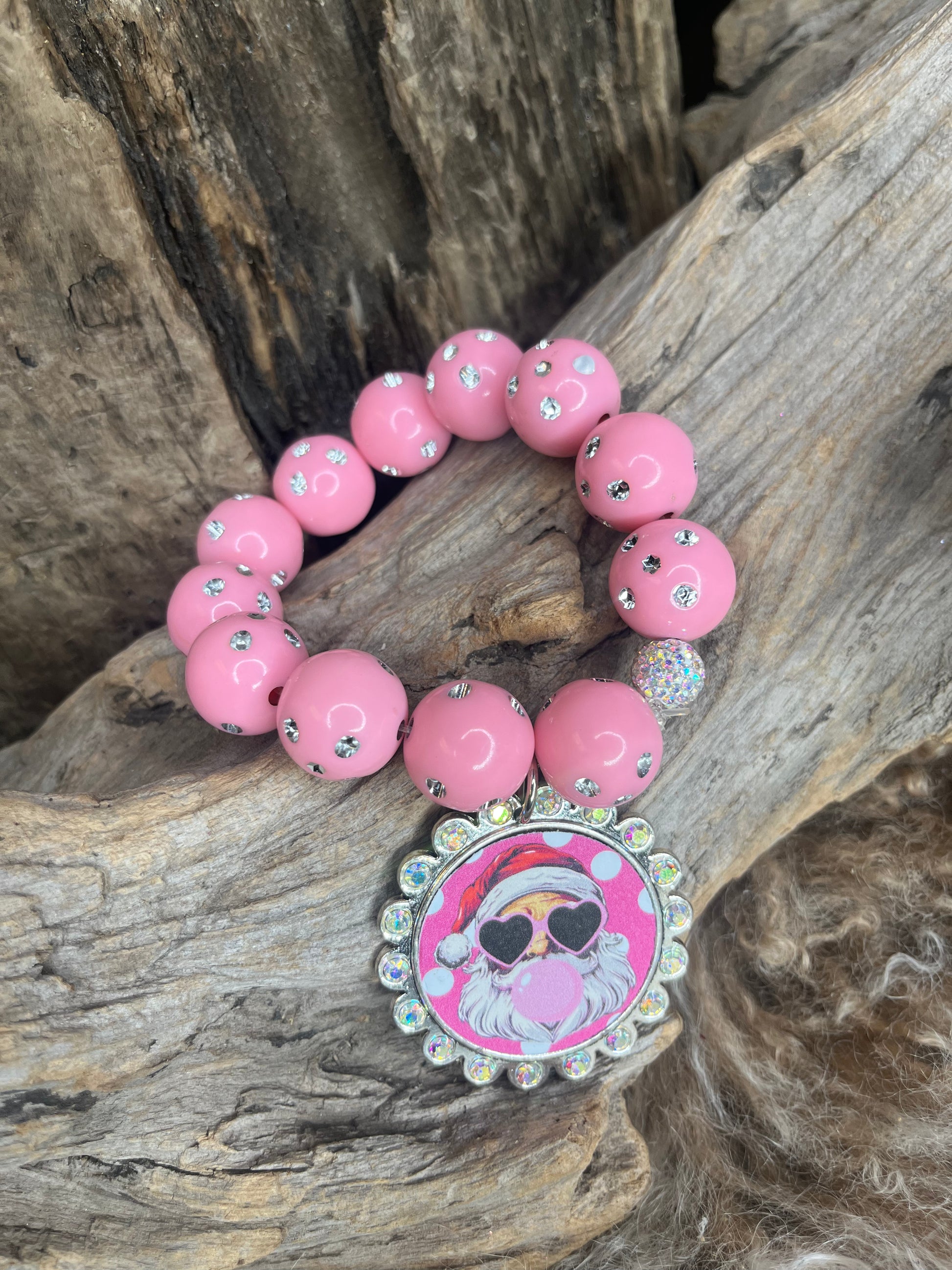 Pink Christmas Single Stretch Bracelet Santa Blowing Bubble