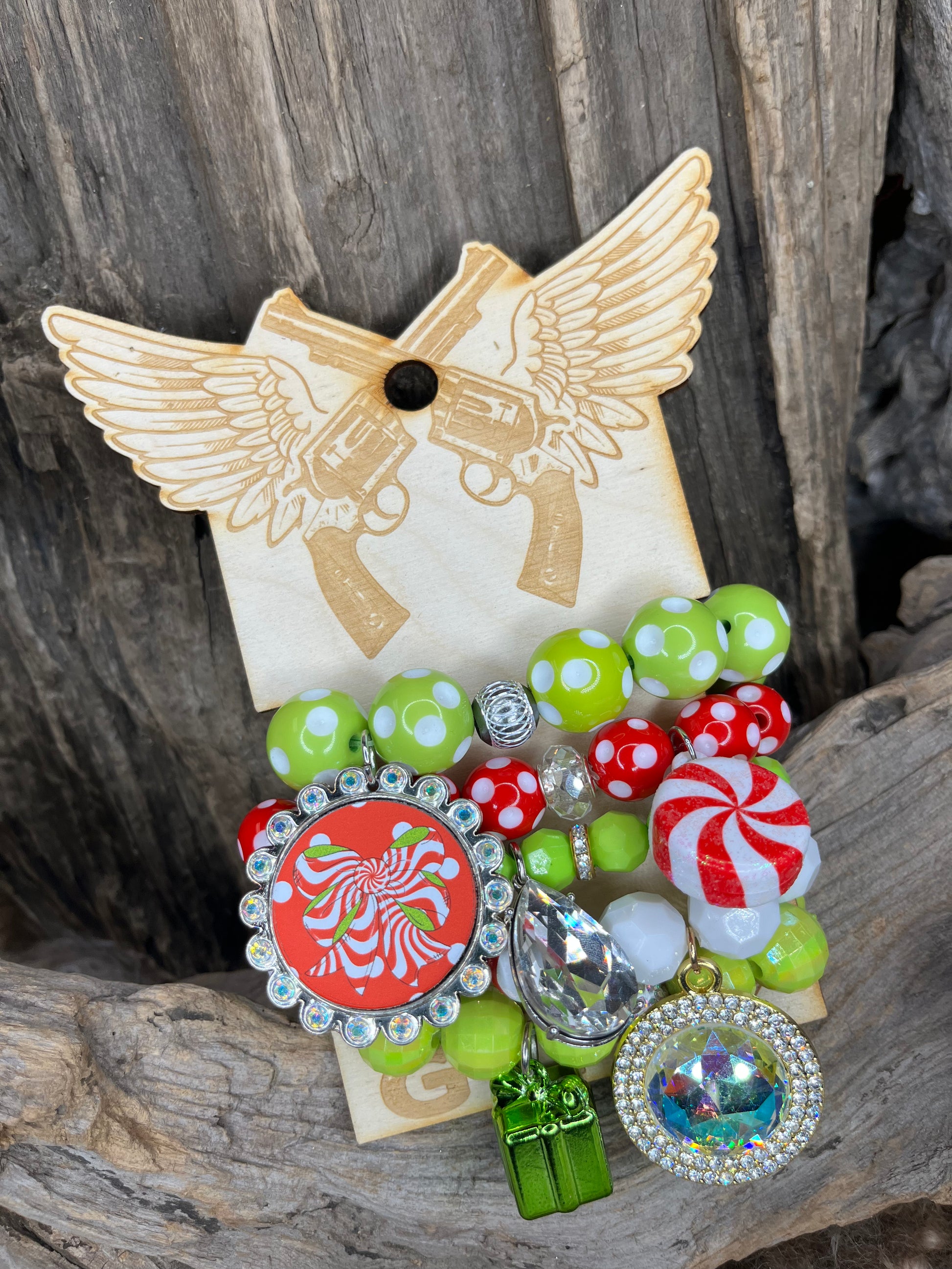 Christmas Stretch Bracelet Set with Red Candy Cane Bow Bezel
