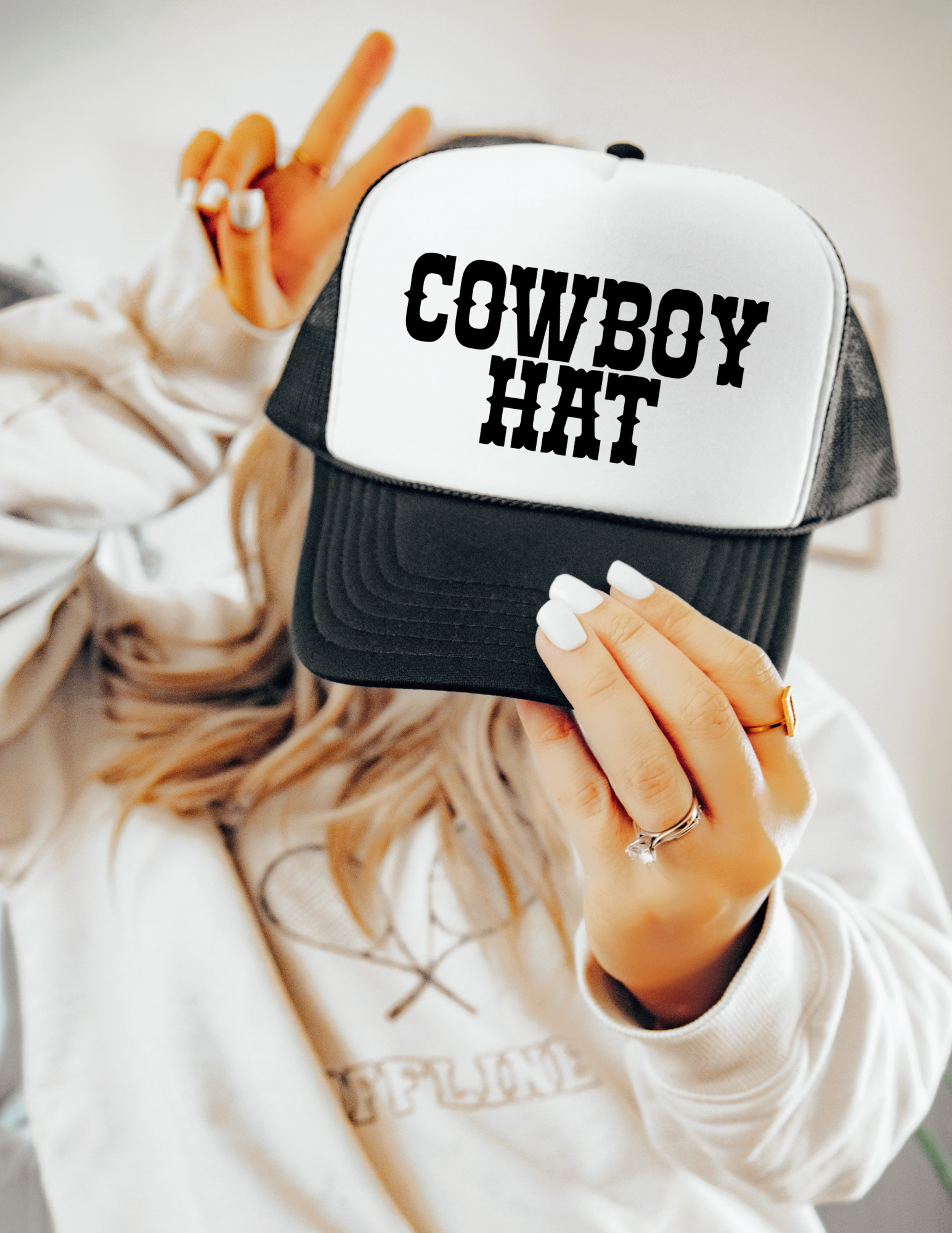 You will need a hat press to press this to a trucker cap. The design measures 4 inches wide. We suggest pressing at 325 DEGREES for 20 SECONDS with HEAVY pressure.