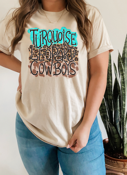 GRAPHIC TEE 411S Turquoise Leopard Cowboys