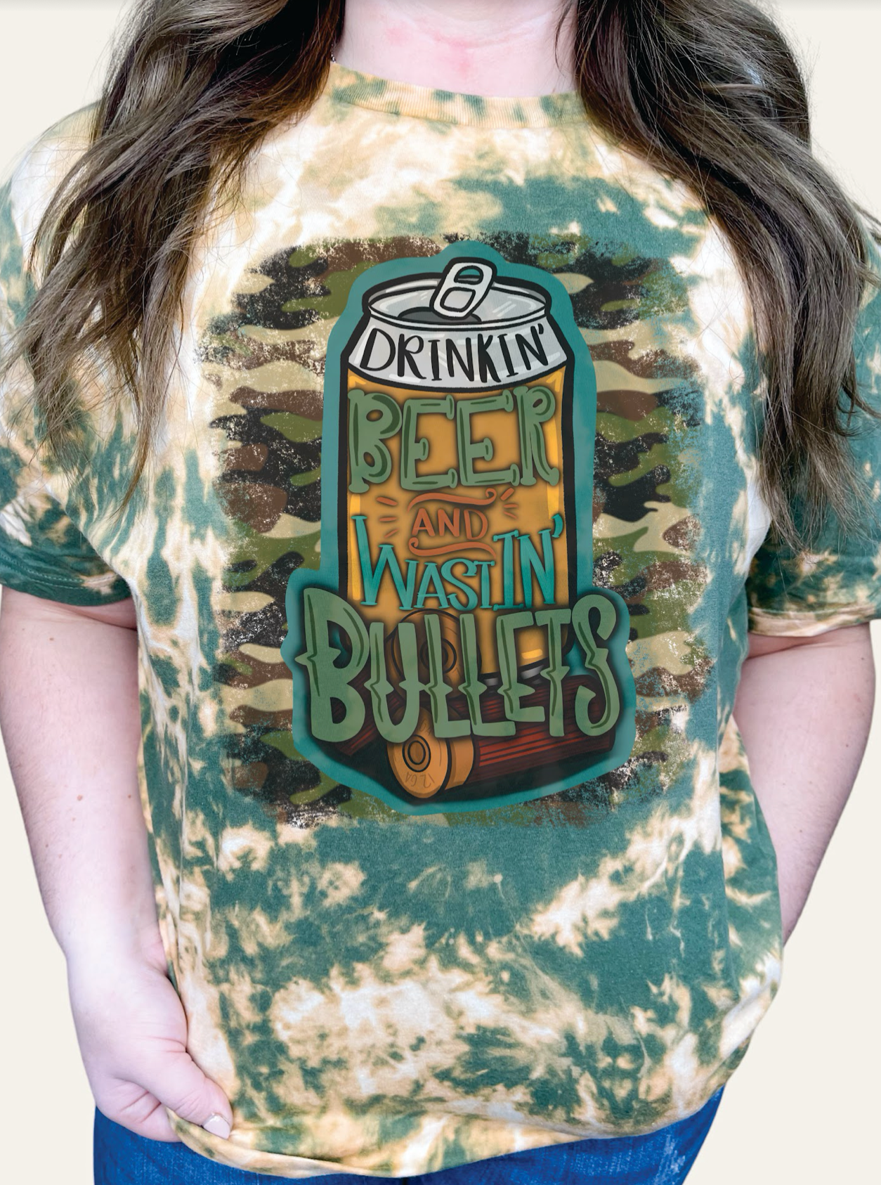 GRAPHIC TEE 57G Drinkin Beer and Wastin Bullets