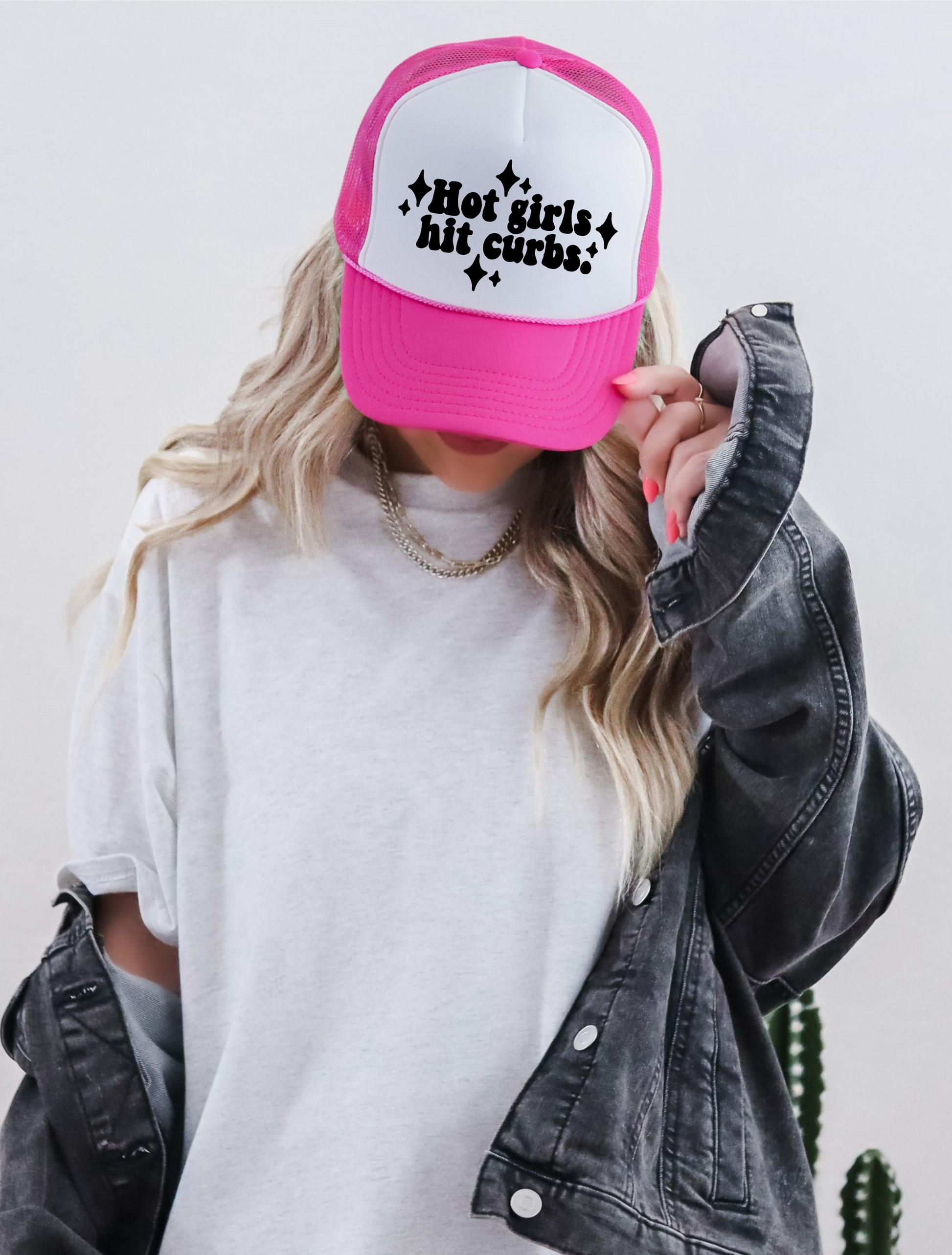 Hot Girls Hit Curbs TRUCKER CAP HOTPNKWHTBLK