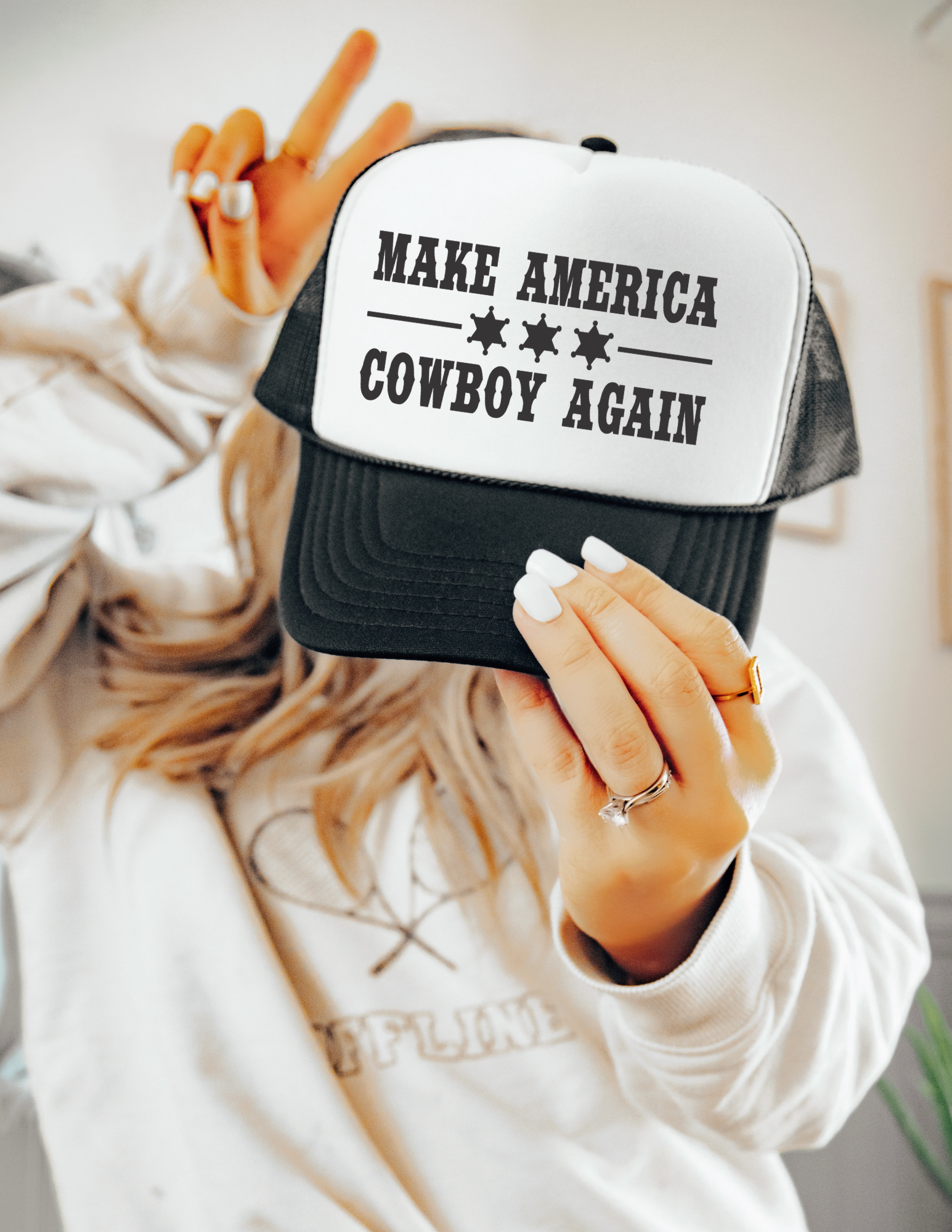You will need a hat press to press this to a trucker cap. The design measures 4 inches wide. We suggest pressing at 325 DEGREES for 20 SECONDS with HEAVY pressure.