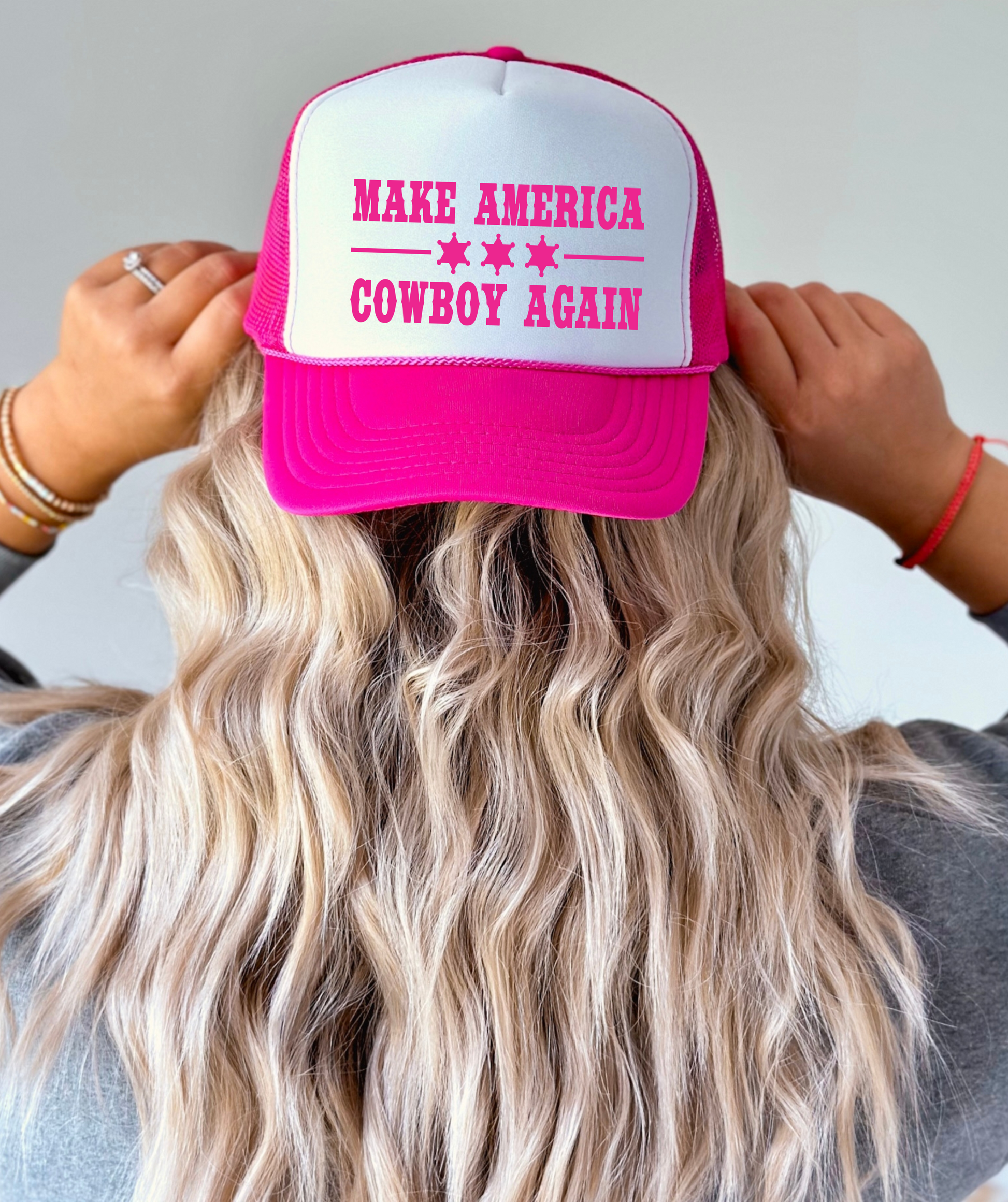 Make America Cowboy Again TRUCKER CAP HOTPNKWHT