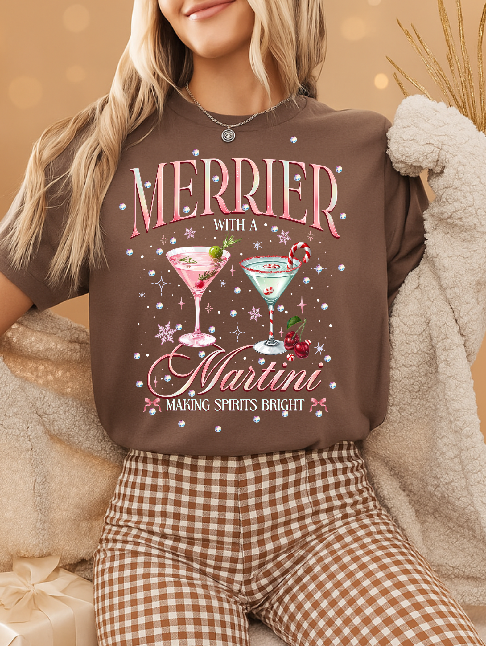 ✰ Merrier With A Martini Christmas Graphic Tshirt