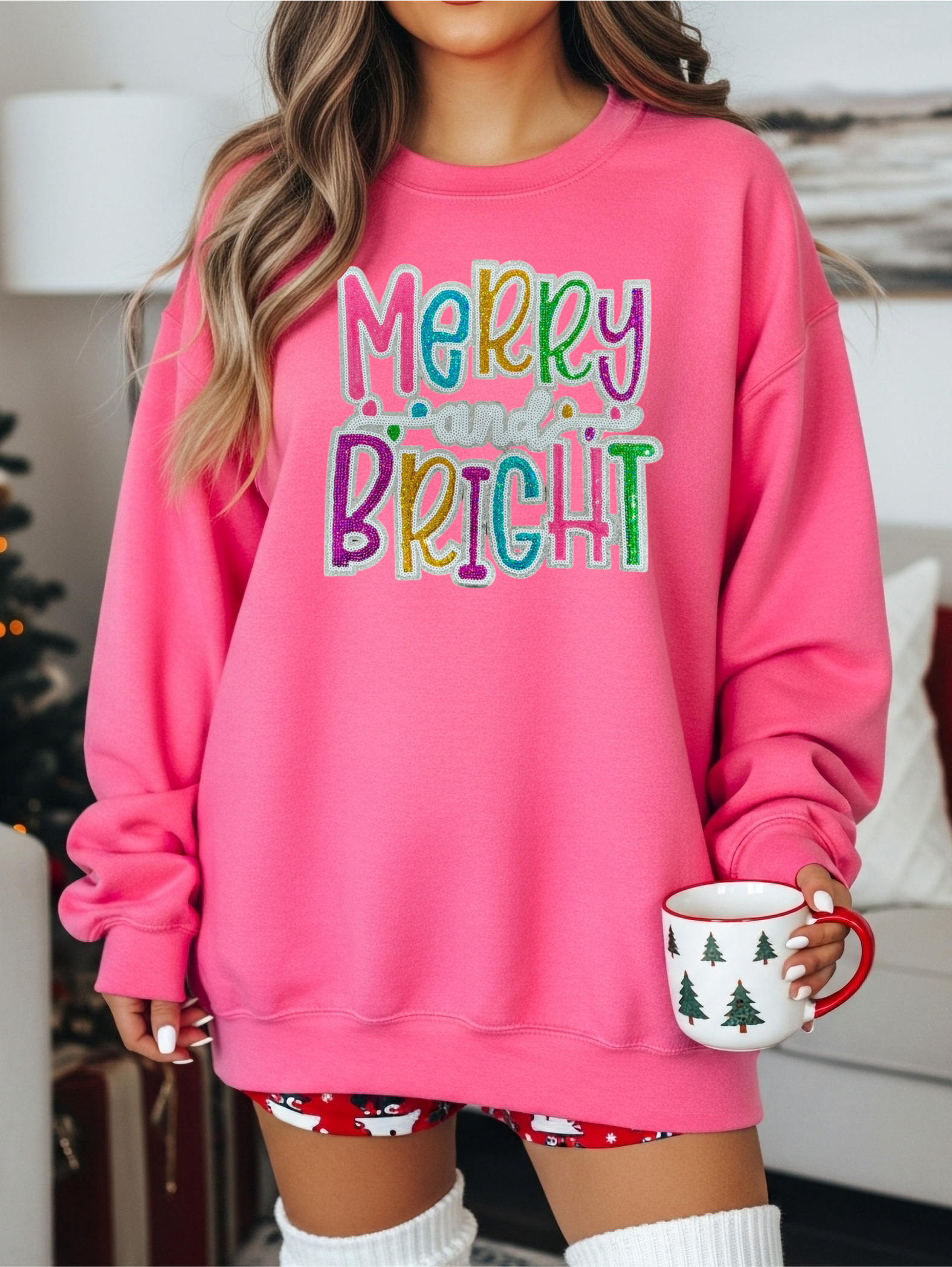 ✰ Merry & Bright Sequin Patch Christmas Graphic Sweatshirt