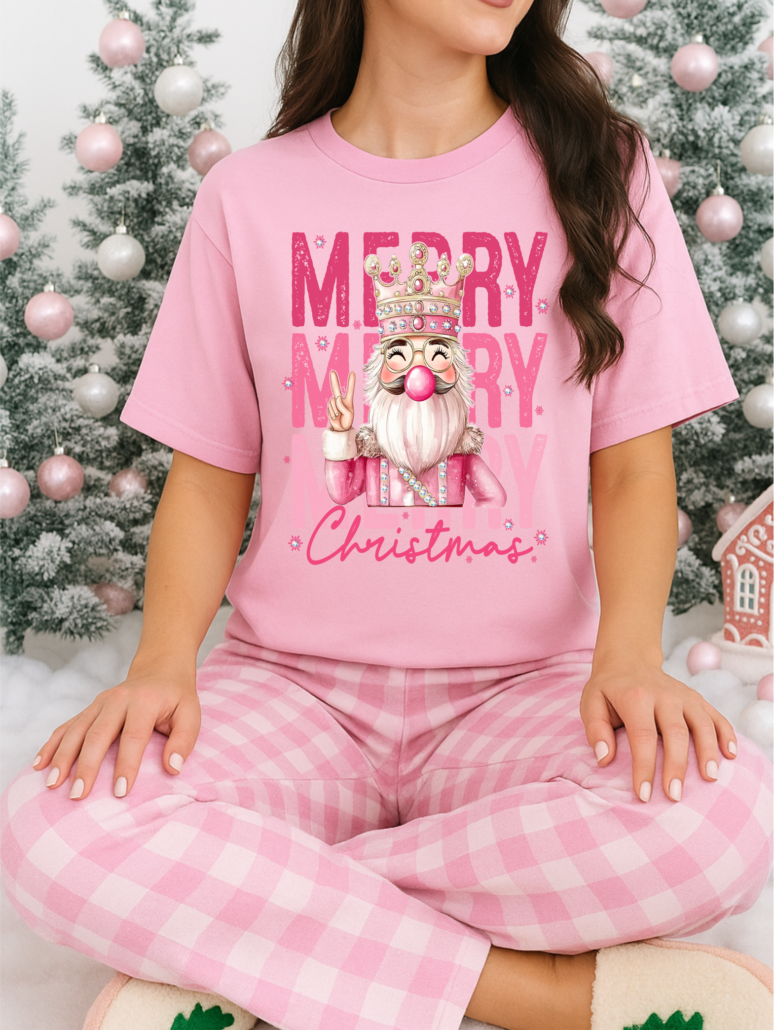 ✰ Merry Merry Merry Christmas Nutcracker Peace Bubble Christmas Graphic Tshirt