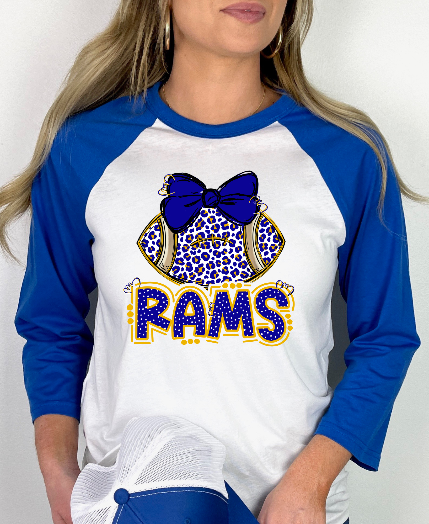 Rams Leopard Football with Bow Mascot Raglan Graphic Tee